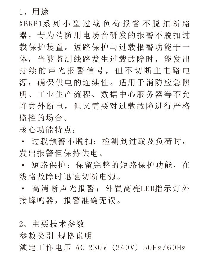 XBKB1小型过载负荷报警不脱口断路器