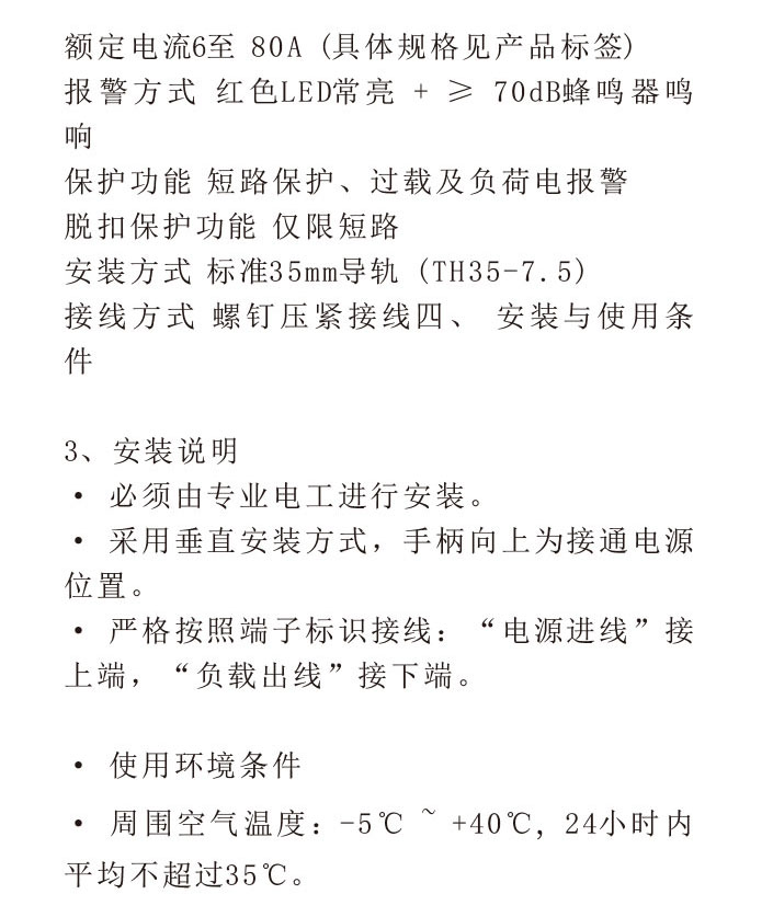 XBKB1L小型漏电报警不脱扣断路器