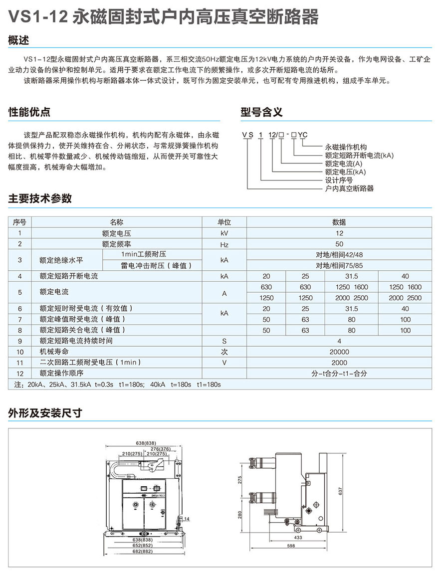 XBKS1(XBKV1)(VS1)(ZN73)-12永磁固封式户内高压真空断路器