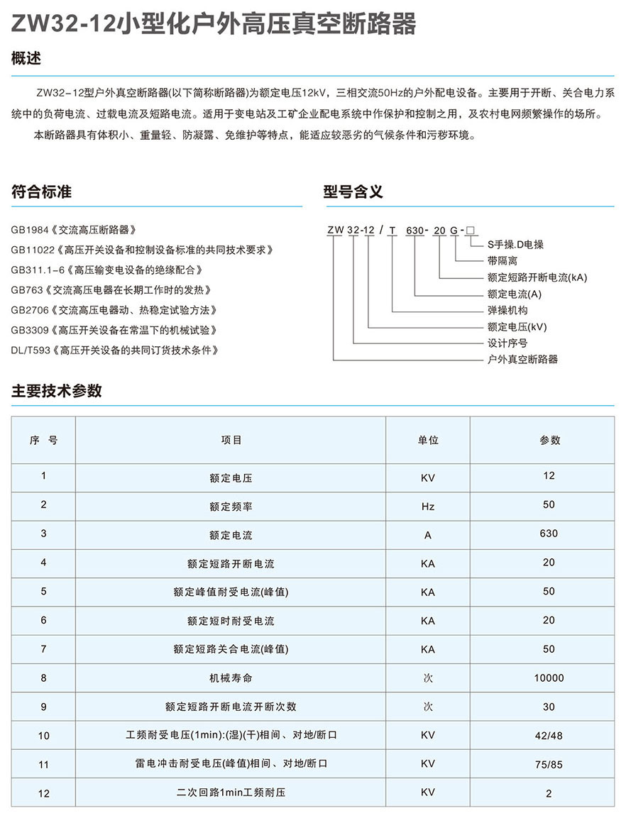 XBKW3(ZW32)-12小型化户外真空断路器